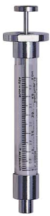 Features of Purge and Trap Syringes include Luer lock, for use with purge and trap analysis; frosted glass on syringe barrel, allowing easy volume reading; plunger tip of stress-formed cirgin PTFE and heavy duty rear flange - flat edges keep the syringe from rolling.